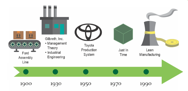 زادگاه تولید ناب در شرکت تویوتا در جزیره ناگویا در ژاپن است. نخستین پیروزی خانواده تویوتا در صنعت ماشینآلات نساجی بود و در دهه 1930 به دلیل نیاز شدید دولت، شرکت مذکور وارد صنعت وسایلنقلیه موتوری گردید. در آن سالها، ای جیتویودا با مهندس شرکت، تایایچی اونو به آمریکا سفر کرده و از شرکت اتومبیلسازی فورد بازدید به عمل آوردند و نهایتا به این نتیجه رسیدند که اصول تولید انبوه قابلیت پیادهسازی در ژاپن را ندارد و این سیستم پر از اتلاف (مودا که لغتی ژاپنی است) است.